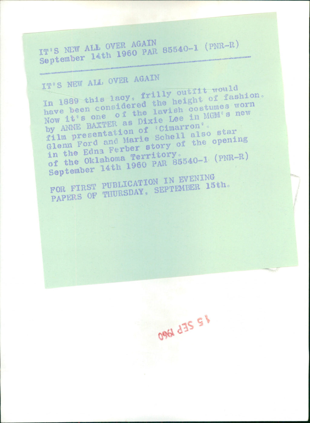Anne Baxter as Dixie Lee in MGM's new film of "Cimarron". Anne Baxter as Dixie Lee in MGM's new film of "Cimarron".