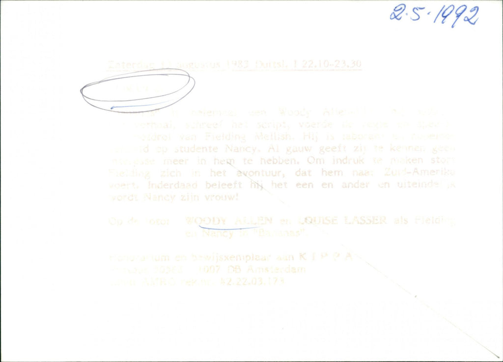 ENG: Bananas is a 1971 American comedy film directed by Woody Allen and starring Allen, Louise Lasser DUTCH: Bananas is een Amerikaanse komische film uit 1971 geregisseerd door Woody Allen en met in de hoofdrollen Allen, Louise Lasser ENG: Bananas is a 1971 American comedy film directed by Woody Allen and starring Allen, Louise Lasser DUTCH: Bananas is een Amerikaanse komische film uit 1971 geregisseerd door Woody Allen en met in de hoofdrollen Allen, Louise Lasser