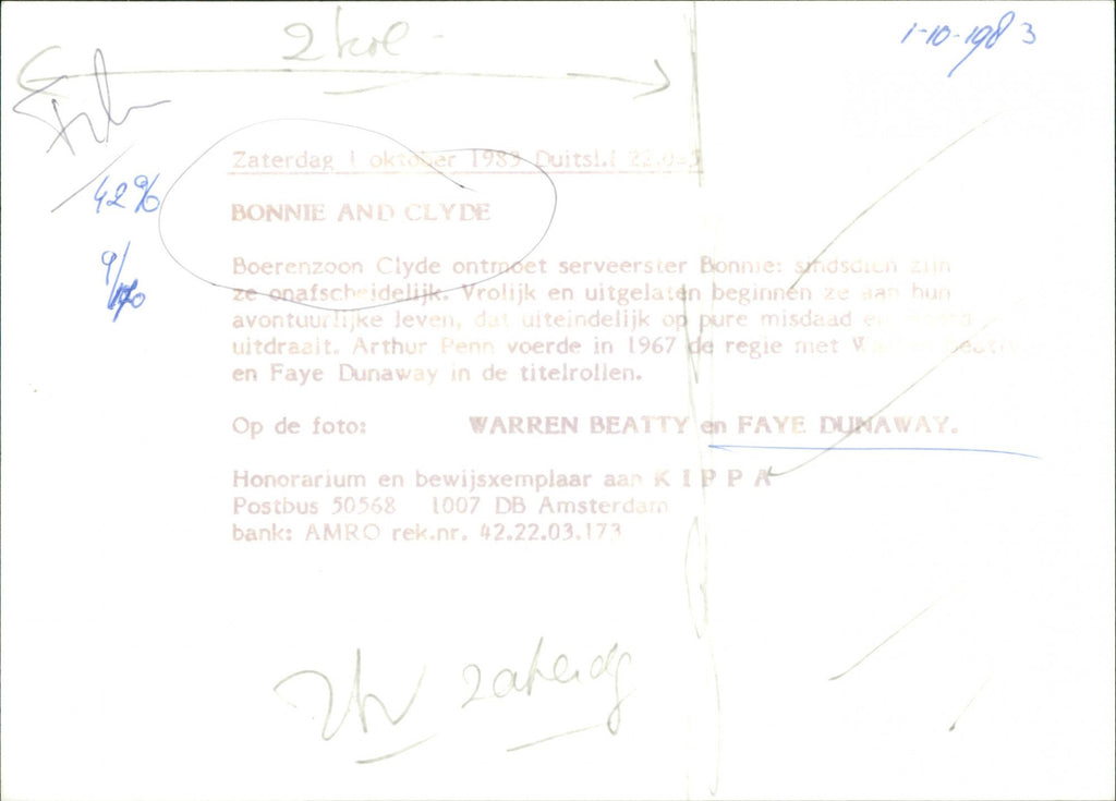 ENG: Bonnie and Clyde is a 1967 American biographical crime film directed by Arthur Penn and starring Warren Beatty and Faye Dunaway DUTCH: Bonnie and Clyde is een Amerikaanse biografische misdaadfilm uit 1967, geregisseerd door Arthur Penn en met in de hoofdrollen Warren Beatty en Faye Dunaway. ENG: Bonnie and Clyde is a 1967 American biographical crime film directed by Arthur Penn and starring Warren Beatty and Faye Dunaway DUTCH: Bonnie and Clyde is een Amerikaanse biografische misdaadfilm uit 1967, geregisseerd door Arthur Penn en met in de hoofdrollen Warren Beatty en Faye Dunaway.