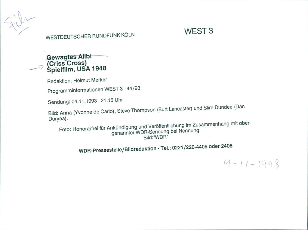 ENG: Criss Cross is a 1949 American film noir crime film directed by Robert Siodmak and starring Burt Lancaster, Yvonne De Carlo and Dan Duryea DUTCH:Criss Cross is een Amerikaanse film noir misdaadfilm uit 1949 onder regie van Robert Siodmak en met Burt Lancaster, Yvonne De Carlo en Dan Duryea. ENG: Criss Cross is a 1949 American film noir crime film directed by Robert Siodmak and starring Burt Lancaster, Yvonne De Carlo and Dan Duryea DUTCH:Criss Cross is een Amerikaanse film noir misdaadfilm uit 1949 onder regie van Robert Siodmak en met Burt Lancaster, Yvonne De Carlo en Dan Duryea.
