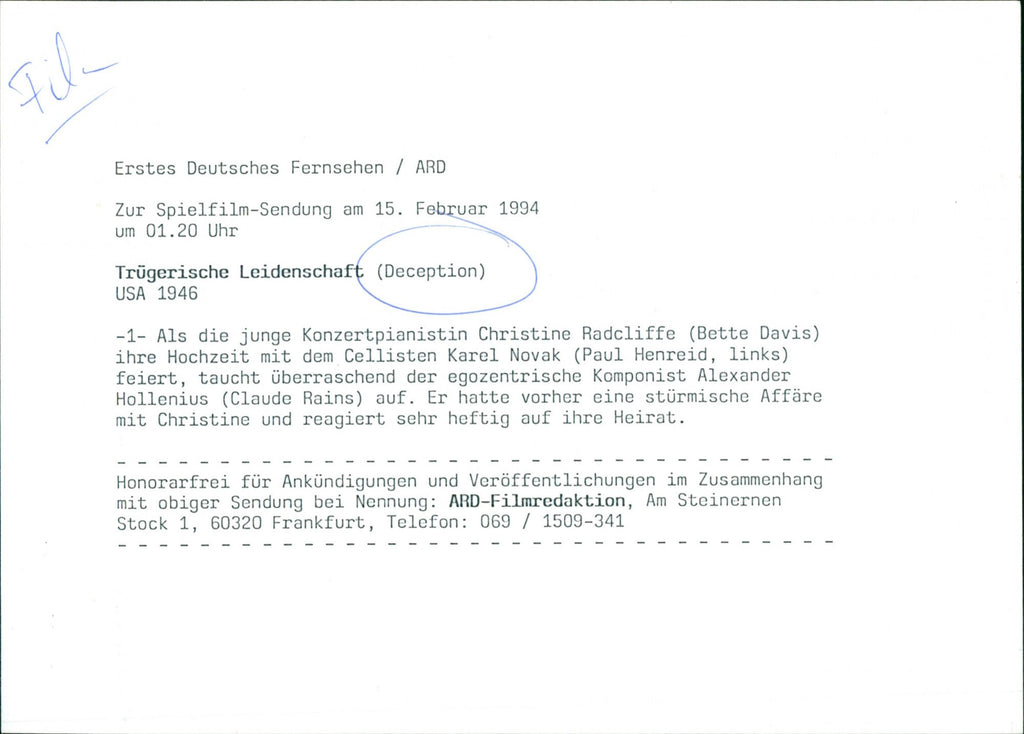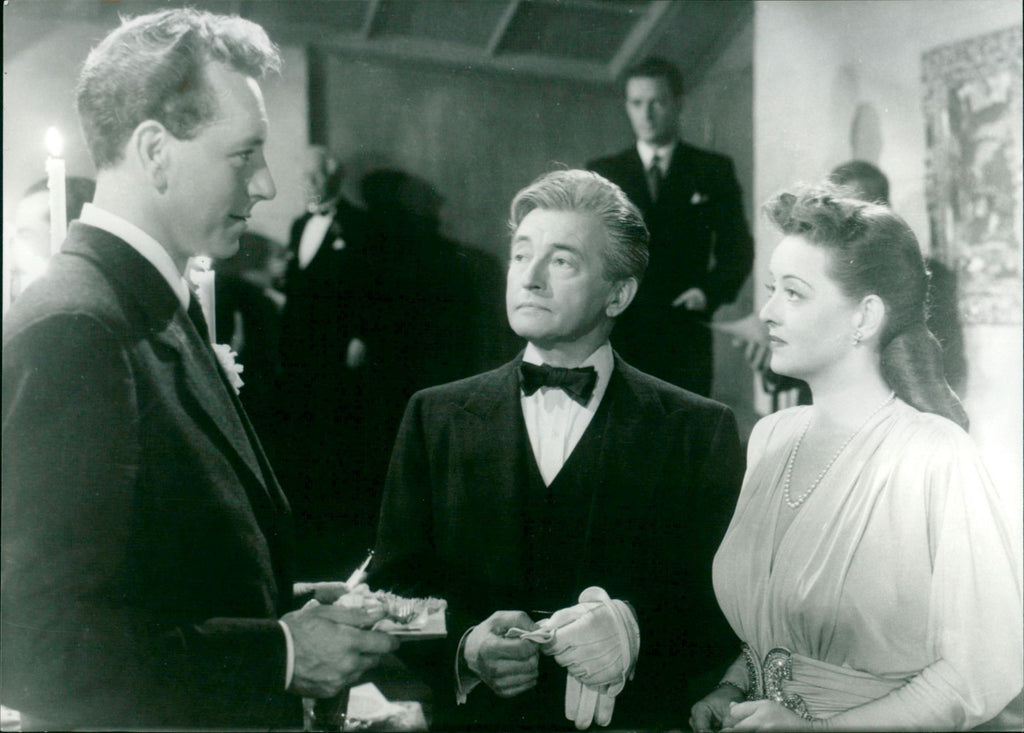 English: A scene from the movie "Deception". When young concert pianist Christine Radcliffe (Bette Davis) celebrates her marriage to cellist Karel Novak (Paul Henreid, left), the rather selfish composer Alexander Hollenius (Claude Rains) shows up. Him and Christine have a history due to their troubled affair and he reacts angrily to her marriage. Dutch: Een scène uit de film "Deception". Wanneer de jonge concertpianiste Christine Radcliffe (Bette Davis) haar huwelijk viert met cellist Karel Novak (Paul Henreid, links), komt de nogal egoïstische componist Alexander Hollenius (Claude Rains) opdagen. Hij en Christine hebben een verleden door hun moeizame affaire en hij reageert boos op haar huwelijk. English: A scene from the movie "Deception". When young concert pianist Christine Radcliffe (Bette Davis) celebrates her marriage to cellist Karel Novak (Paul Henreid, left), the rather selfish composer Alexander Hollenius (Claude Rains) shows up. Him and Christine have a history due to their troubled affair and he reacts angrily to her marriage. Dutch: Een scène uit de film "Deception". Wanneer de jonge concertpianiste Christine Radcliffe (Bette Davis) haar huwelijk viert met cellist Karel Novak (Paul Henreid, links), komt de nogal egoïstische componist Alexander Hollenius (Claude Rains) opdagen. Hij en Christine hebben een verleden door hun moeizame affaire en hij reageert boos op haar huwelijk.
