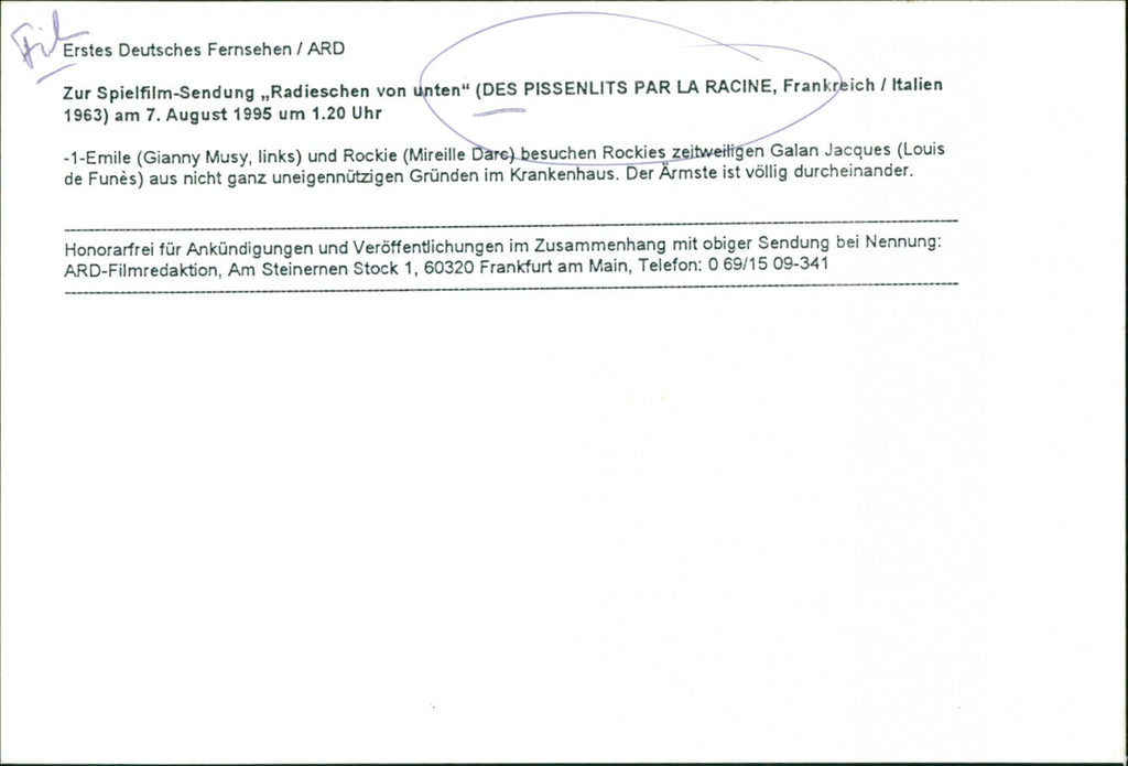 English: A scene from the movie "Des pissenlits par la racine". Emile (Gianny Musy, left) and Rockie (Mireille Darc) visit Rockie's temporary gallant Jacques (Louis de Funes) in the hospital for not entirely altruistic reasons. The poor man is completely confused. Dutch: Een scène uit de film "Des pissenlits par la racine". Emile (Gianny Musy, links) en Rockie (Mireille Darc) bezoeken Rockie's tijdelijke galant Jacques (Louis de Funes) in het ziekenhuis om niet geheel altruïstische redenen. De arme man is volledig in de war. English: A scene from the movie "Des pissenlits par la racine". Emile (Gianny Musy, left) and Rockie (Mireille Darc) visit Rockie's temporary gallant Jacques (Louis de Funes) in the hospital for not entirely altruistic reasons. The poor man is completely confused. Dutch: Een scène uit de film "Des pissenlits par la racine". Emile (Gianny Musy, links) en Rockie (Mireille Darc) bezoeken Rockie's tijdelijke galant Jacques (Louis de Funes) in het ziekenhuis om niet geheel altruïstische redenen. De arme man is volledig in de war.