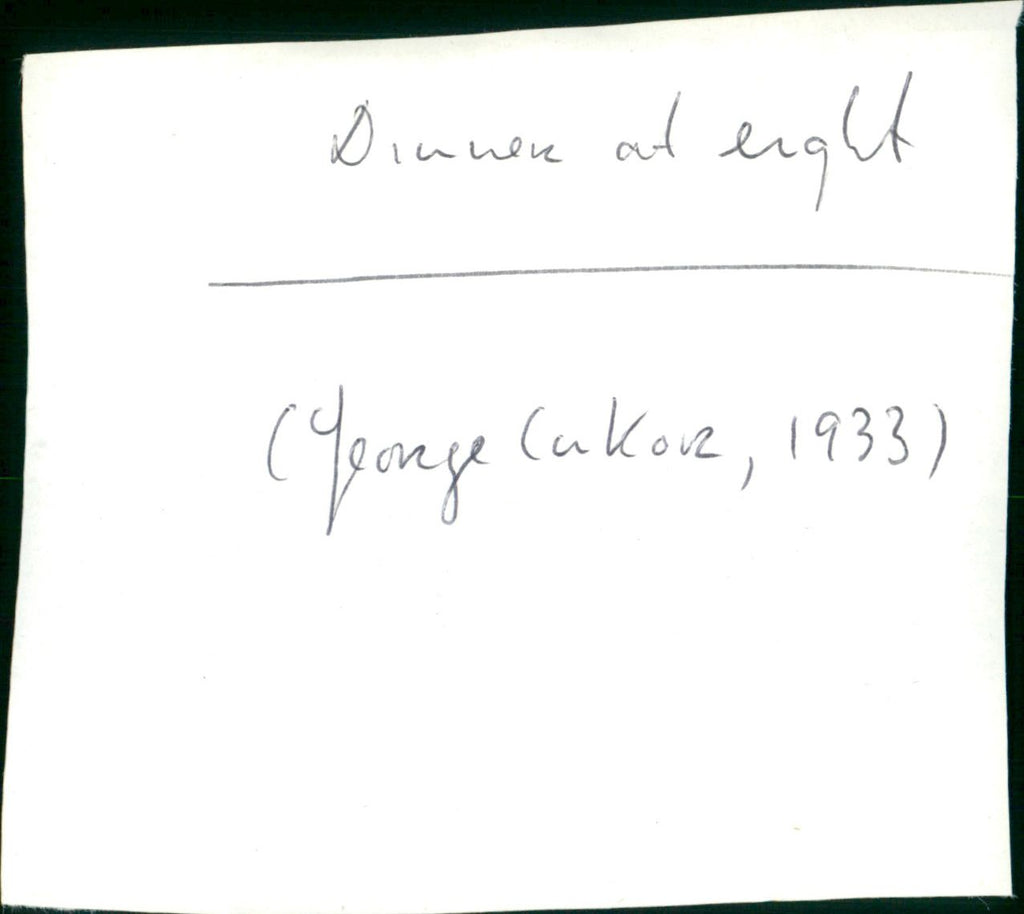 ENG: Dinner at Eight is a 1933 American pre-Code comedy-drama film directed by George Cukor DUTCH: Dinner at Eight is een Amerikaanse pre-Code comedy-dramafilm uit 1933 onder regie van George Cukor. ENG: Dinner at Eight is a 1933 American pre-Code comedy-drama film directed by George Cukor DUTCH: Dinner at Eight is een Amerikaanse pre-Code comedy-dramafilm uit 1933 onder regie van George Cukor.