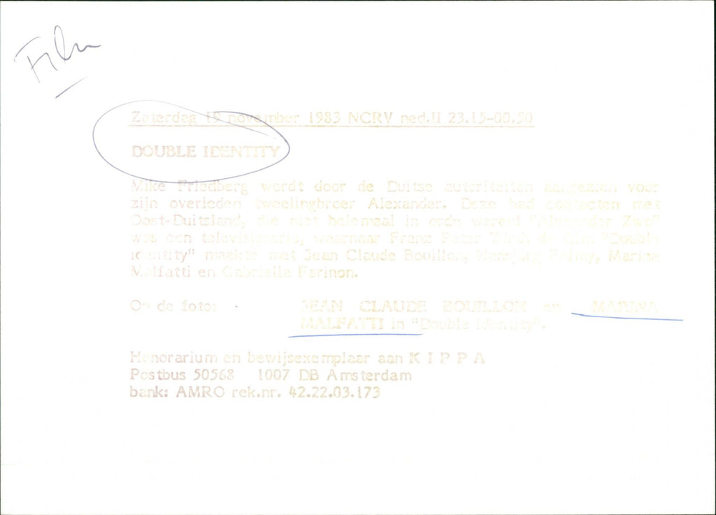 ENG: Jean Claude Bouillon and Marina Malfanti in Double Identity DUTCH: Jean Claude Bouillon en Marina Malfanti in Double Identity ENG: Jean Claude Bouillon and Marina Malfanti in Double Identity DUTCH: Jean Claude Bouillon en Marina Malfanti in Double Identity