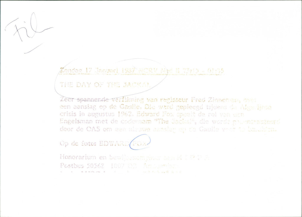 English: Edward Fox as "The Jackal" in the movie "The Day of the Jackal". Dutch: Edward Fox als "The Jackal" in de film "The Day of the Jackal". English: Edward Fox as "The Jackal" in the movie "The Day of the Jackal". Dutch: Edward Fox als "The Jackal" in de film "The Day of the Jackal".