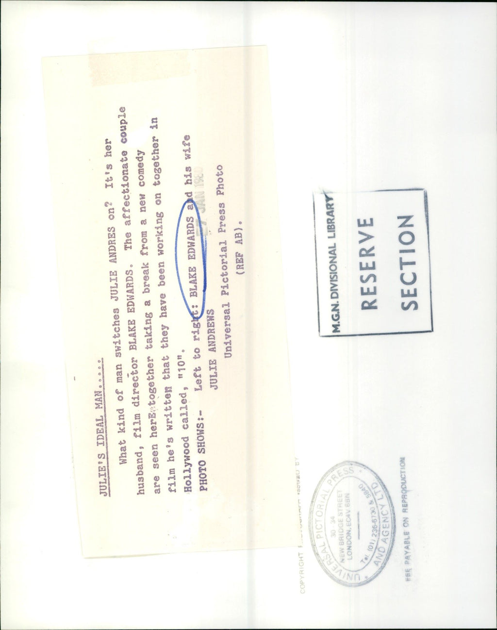 EDWARDS BLAKE FILM PRODUCER - LTD JULIES AND AGENCY, WIFE EDWARDS BLAKE FILM PRODUCER - LTD JULIES AND AGENCY, WIFE