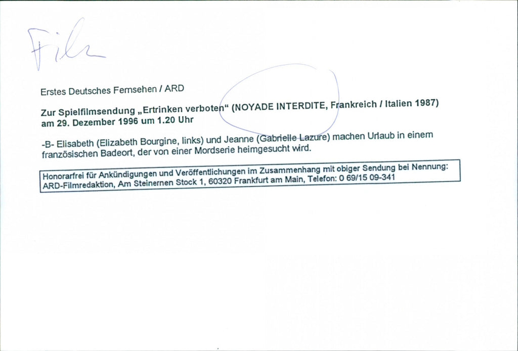 English: Elizabeth Bourgine as Elisabeth (left) and Gabrielle Lazure as Jeanne in the 1987 movie "Noyade interdite". Dutch: Elizabeth Bourgine als Elisabeth (links) en Gabrielle Lazure als Jeanne in de film "Noyade interdite" uit 1987. English: Elizabeth Bourgine as Elisabeth (left) and Gabrielle Lazure as Jeanne in the 1987 movie "Noyade interdite". Dutch: Elizabeth Bourgine als Elisabeth (links) en Gabrielle Lazure als Jeanne in de film "Noyade interdite" uit 1987.