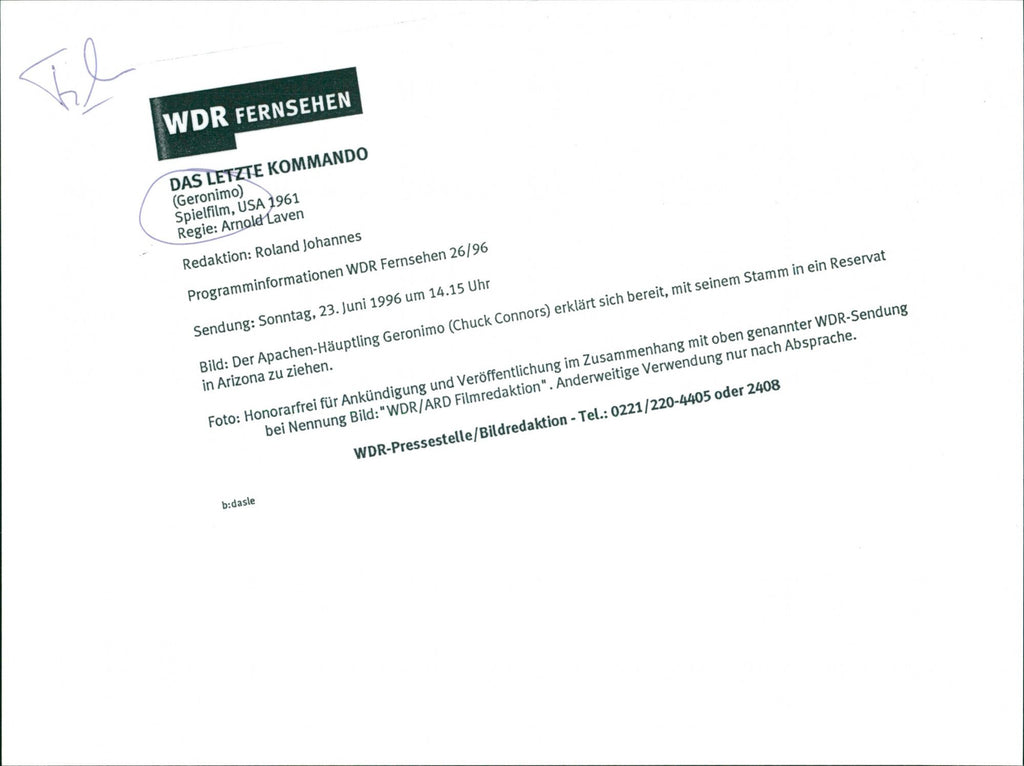 ENG: Geronimo is a 1962 American Western film made by Levy-Gardner-Laven and released by United Artists, starring Chuck Connors DUTCH: Geronimo is een Amerikaanse westernfilm uit 1962, gemaakt door Levy-Gardner-Laven en uitgebracht door United Artists, met in de hoofdrol Chuck Connors. ENG: Geronimo is a 1962 American Western film made by Levy-Gardner-Laven and released by United Artists, starring Chuck Connors DUTCH: Geronimo is een Amerikaanse westernfilm uit 1962, gemaakt door Levy-Gardner-Laven en uitgebracht door United Artists, met in de hoofdrol Chuck Connors.