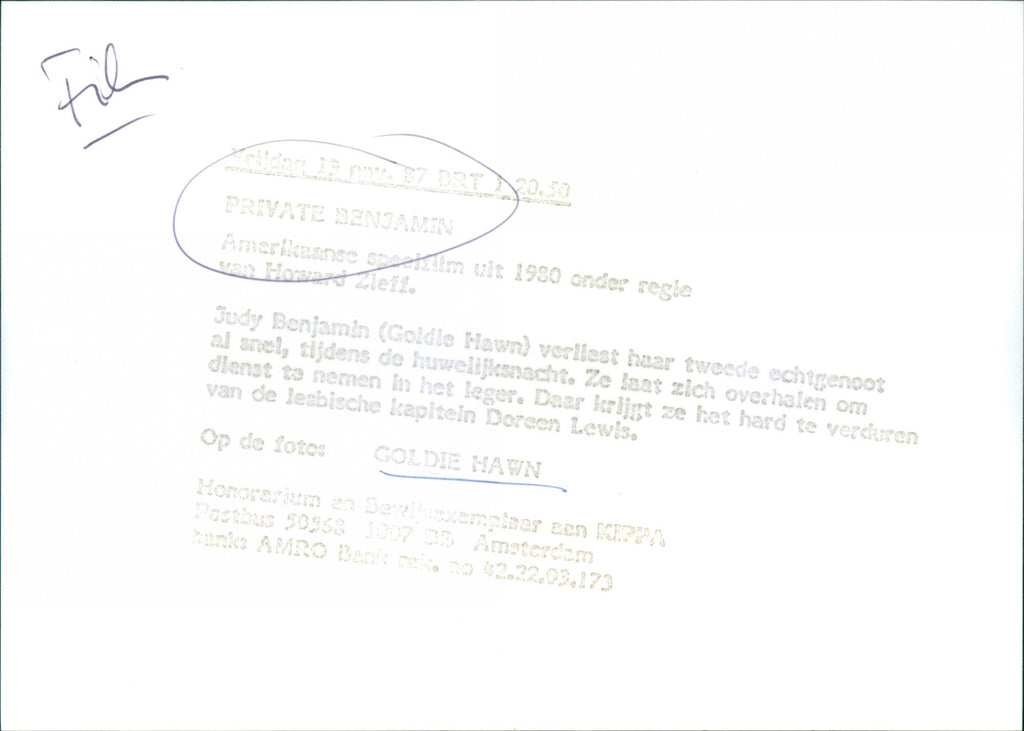 Goldie Hawn as Judy Benjamin in the 1980 film Private Benjamin. - Vintage Photograph