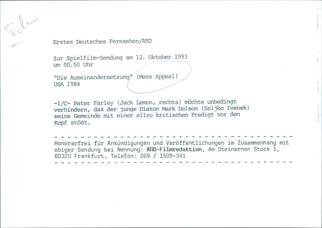 English: Jack Lemmon as Father Farley (right) and Zeljko Ivanek as Deacon Mark Dolson in the movie "Mass Appeal". Dutch: Jack Lemmon als Father Farley (rechts) en Zeljko Ivanek als Deacon Mark Dolson in de film "Mass Appeal". English: Jack Lemmon as Father Farley (right) and Zeljko Ivanek as Deacon Mark Dolson in the movie "Mass Appeal". Dutch: Jack Lemmon als Father Farley (rechts) en Zeljko Ivanek als Deacon Mark Dolson in de film "Mass Appeal".