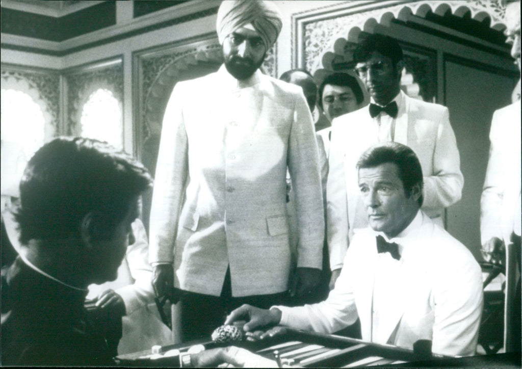English: The 1983 James Bond movie "Octopussy". James Bond (Roger Moore, 2nd from right) plays for high stakes with Kamal (Louis Jourdan, left). Dutch: De James Bond-film "Octopussy" uit 1983. James Bond (Roger Moore, 2e van rechts) speelt om een hoge inzet met Kamal (Louis Jourdan, links). English: The 1983 James Bond movie "Octopussy". James Bond (Roger Moore, 2nd from right) plays for high stakes with Kamal (Louis Jourdan, left). Dutch: De James Bond-film "Octopussy" uit 1983. James Bond (Roger Moore, 2e van rechts) speelt om een hoge inzet met Kamal (Louis Jourdan, links).