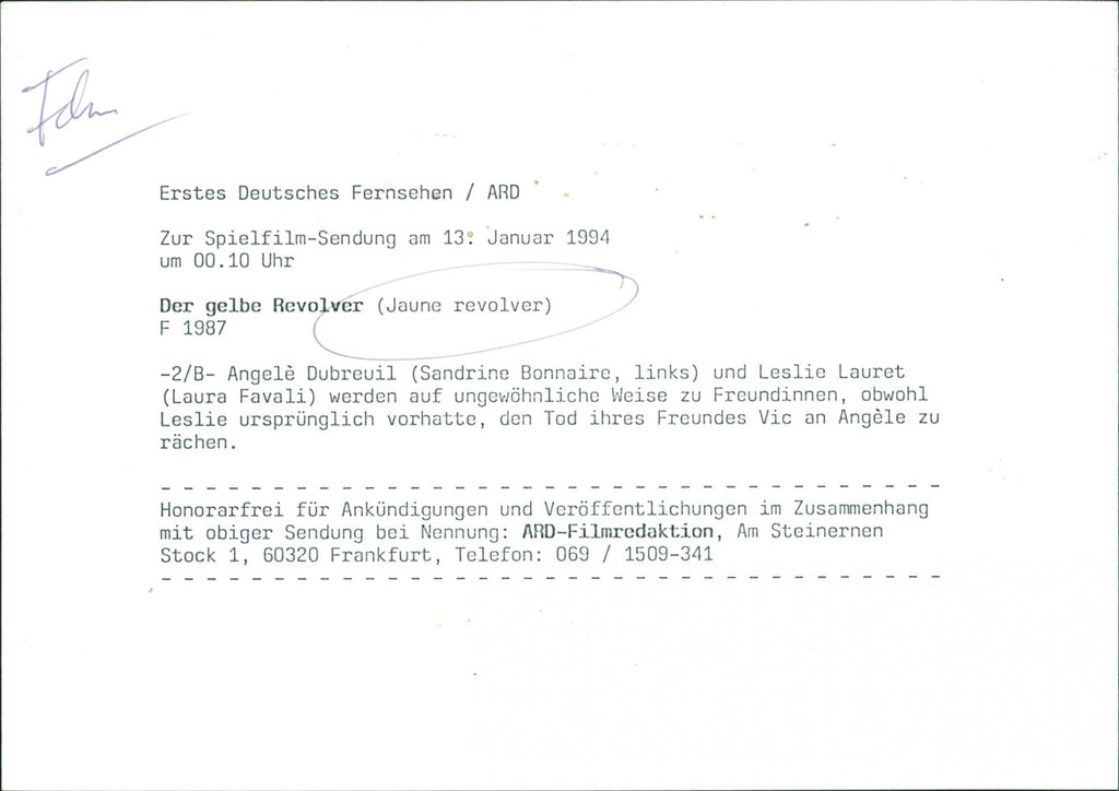 English: Sandrine Bonnaire as Angele Dubreuil and Laura Favali as Leslie Lauret in a scene from the movie "Jaune revolver". Sandrine Bonnaire en Angele Dubreuil et Laura Favali en Leslie Lauret dans une scène du film "Jaune revolver". Dutch: Sandrine Bonnaire als Angele Dubreuil en Laura Favali als Leslie Lauret in een scène uit de film "Jaune revolver". English: Sandrine Bonnaire as Angele Dubreuil and Laura Favali as Leslie Lauret in a scene from the movie "Jaune revolver". Sandrine Bonnaire en Angele Dubreuil et Laura Favali en Leslie Lauret dans une scène du film "Jaune revolver". Dutch: Sandrine Bonnaire als Angele Dubreuil en Laura Favali als Leslie Lauret in een scène uit de film "Jaune revolver".