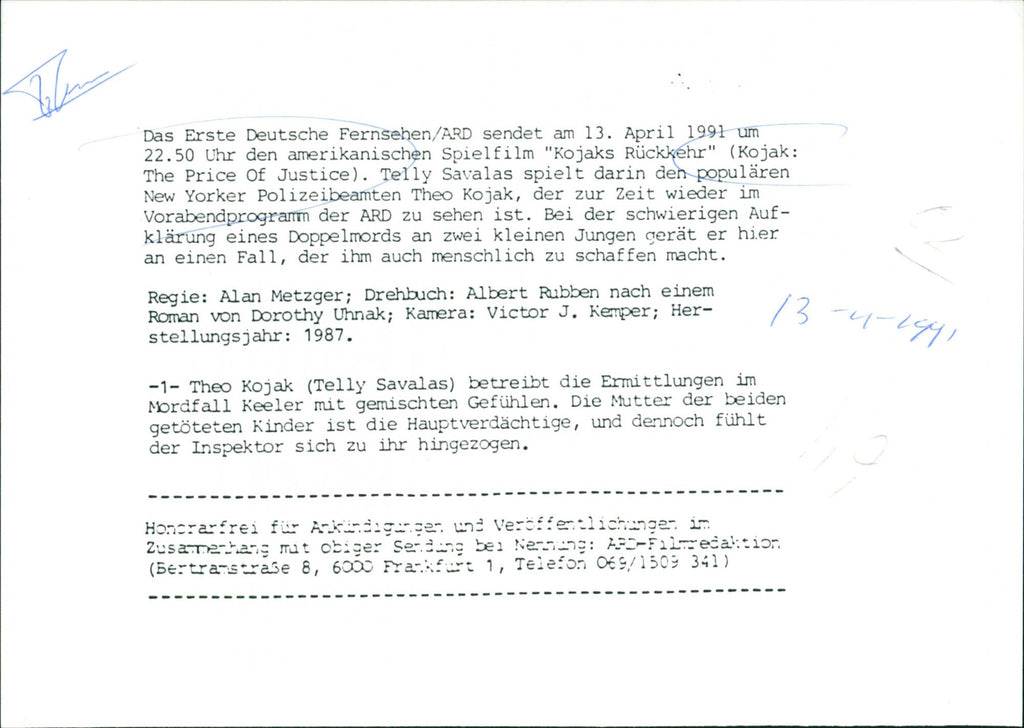 ENG: Kojak: The Price of Justice is a 1987 made-for-television film based on the 1973–1978 TV series Kojak, starring Telly Savalas as Theo Kojak. DUTCH: Kojak: The Price of Justice is een televisiefilm uit 1987, gebaseerd op de tv-serie Kojak uit 1973-1978, met in de hoofdrol Telly Savalas als Theo Kojak. ENG: Kojak: The Price of Justice is a 1987 made-for-television film based on the 1973–1978 TV series Kojak, starring Telly Savalas as Theo Kojak. DUTCH: Kojak: The Price of Justice is een televisiefilm uit 1987, gebaseerd op de tv-serie Kojak uit 1973-1978, met in de hoofdrol Telly Savalas als Theo Kojak.