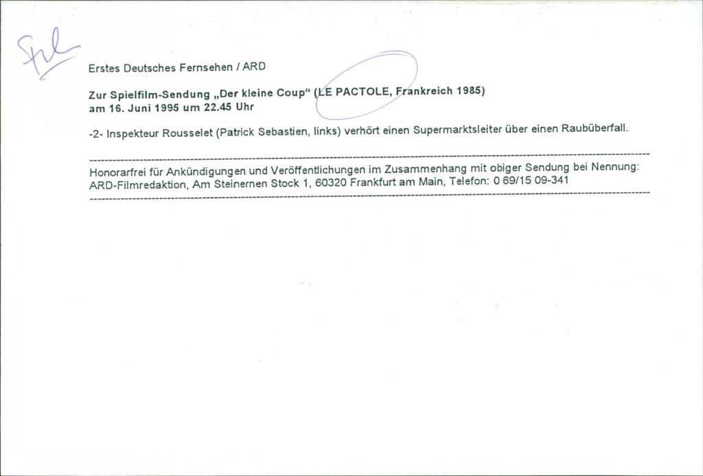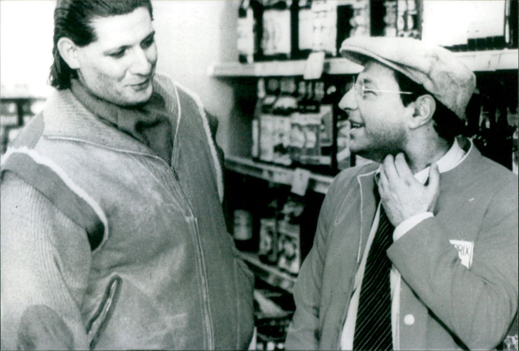 English: A scene from the 1985 movie "Le pactole" in which Inspector Rousselet (Patrick Sebastien, left) interrogates a supermarket manager about a robbery. Dutch: Een scène uit de film "Le pactole" uit 1985, waarin inspecteur Rousselet (Patrick Sebastien, links) een supermarktmanager ondervraagt over een overval. English: A scene from the 1985 movie "Le pactole" in which Inspector Rousselet (Patrick Sebastien, left) interrogates a supermarket manager about a robbery. Dutch: Een scène uit de film "Le pactole" uit 1985, waarin inspecteur Rousselet (Patrick Sebastien, links) een supermarktmanager ondervraagt over een overval.
