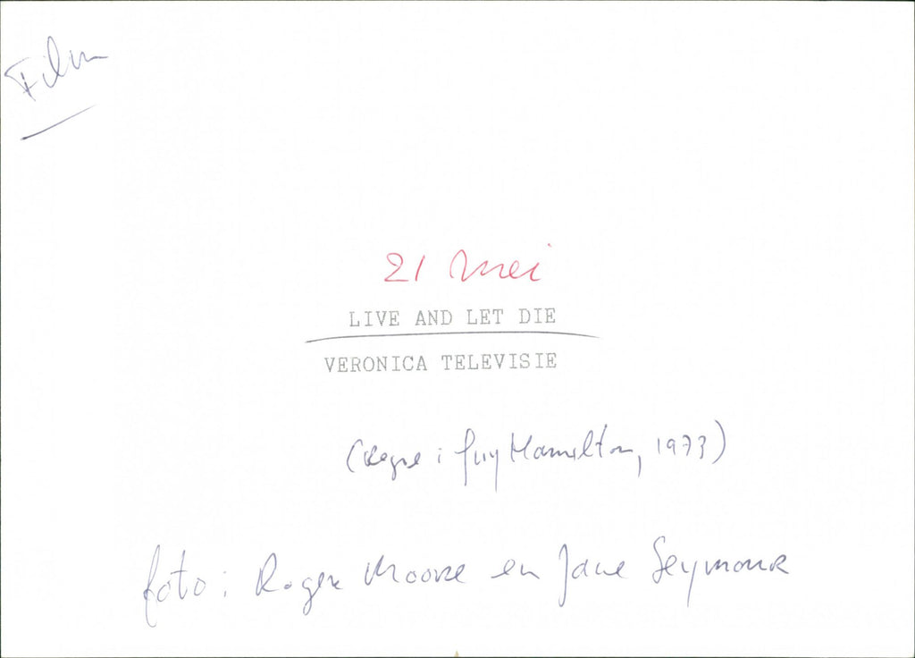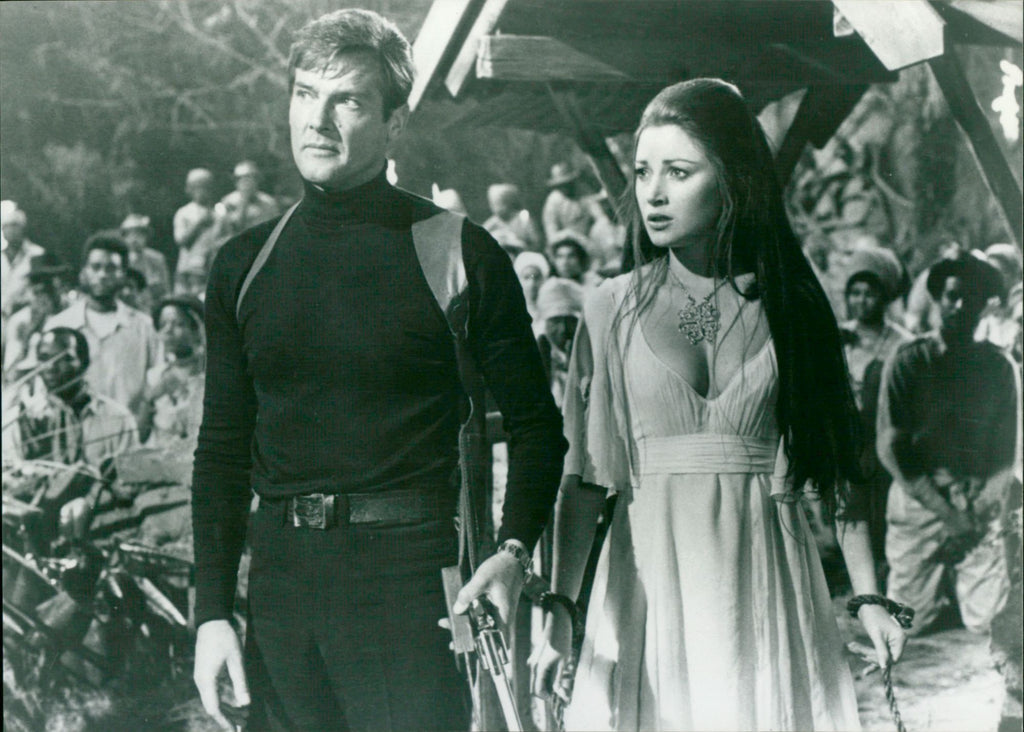 ENG: Roger Moore and Jane Seymour on Live and Let Die film DUTCH: Roger Moore en Jane Seymour op Live and Let Die-film ENG: Roger Moore and Jane Seymour on Live and Let Die film DUTCH: Roger Moore en Jane Seymour op Live and Let Die-film