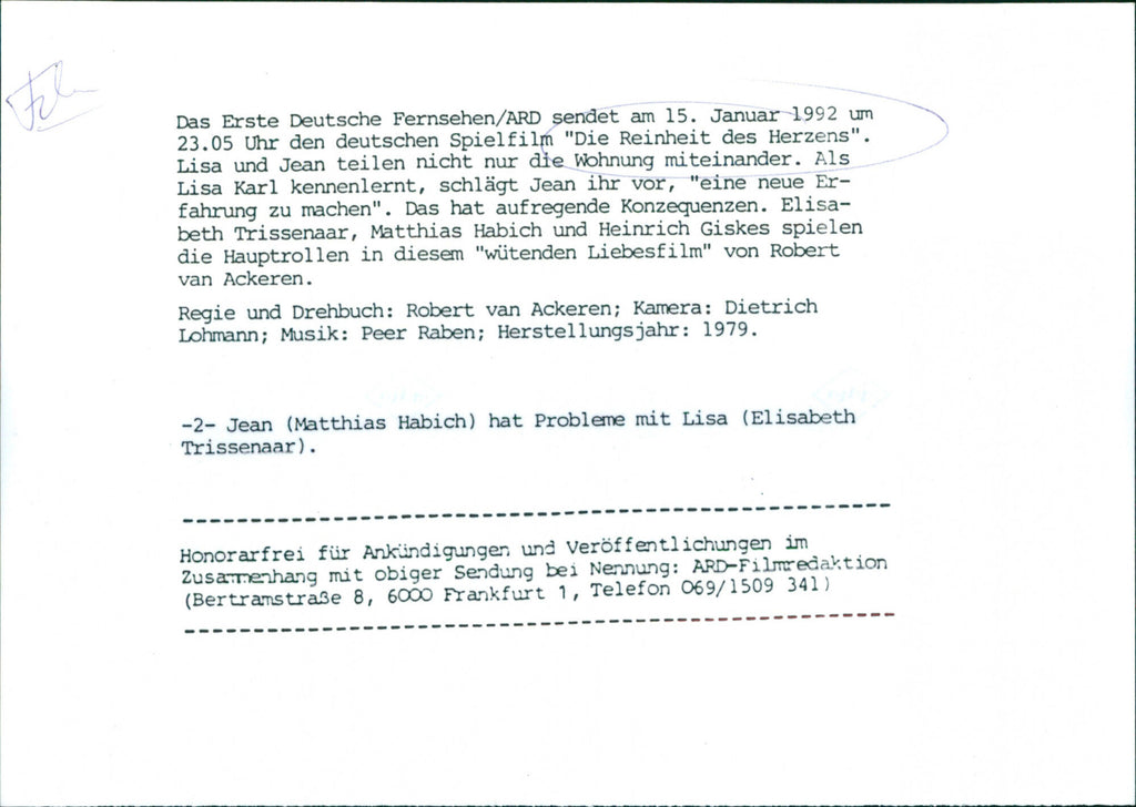 English: Matthias Habich as Jean and Elisabeth Trissenaar as Lisa in the movie "Die Reinheit des Herzens". Dutch: Matthias Habich als Jean en Elisabeth Trissenaar als Lisa in de film "Die Reinheit des Herzens". English: Matthias Habich as Jean and Elisabeth Trissenaar as Lisa in the movie "Die Reinheit des Herzens". Dutch: Matthias Habich als Jean en Elisabeth Trissenaar als Lisa in de film "Die Reinheit des Herzens".