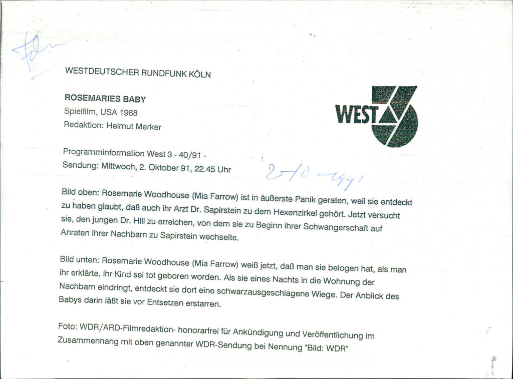 English: Mia Farrow as Rosemary Woodhouse in two different scenes from the movie "Rosemary's Baby". Dutch: Mia Farrow als Rosemary Woodhouse in twee verschillende scènes uit de film "Rosemary's Baby". English: Mia Farrow as Rosemary Woodhouse in two different scenes from the movie "Rosemary's Baby". Dutch: Mia Farrow als Rosemary Woodhouse in twee verschillende scènes uit de film "Rosemary's Baby".