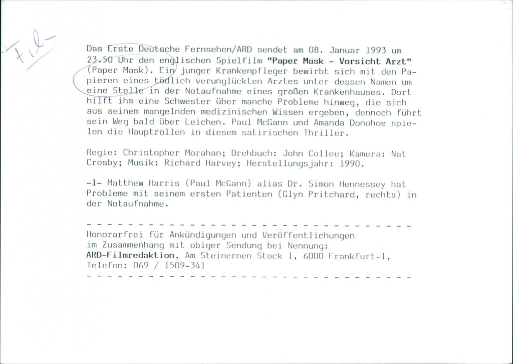 English: A scene from the 1990 movie "Paper Mask" wherein Matthew Harris (Paul McGann) aka Dr. Simon Hennessey, has trouble with his first patient (Glyn Pritchard, right) in the emergency room. Dutch: Een scène uit de film "Paper Mask" uit 1990, waarin Matthew Harris (Paul McGann) alias Dr. Simon Hennessey, problemen heeft met zijn eerste patiënt (Glyn Pritchard, rechts) op de eerste hulp. English: A scene from the 1990 movie "Paper Mask" wherein Matthew Harris (Paul McGann) aka Dr. Simon Hennessey, has trouble with his first patient (Glyn Pritchard, right) in the emergency room. Dutch: Een scène uit de film "Paper Mask" uit 1990, waarin Matthew Harris (Paul McGann) alias Dr. Simon Hennessey, problemen heeft met zijn eerste patiënt (Glyn Pritchard, rechts) op de eerste hulp.