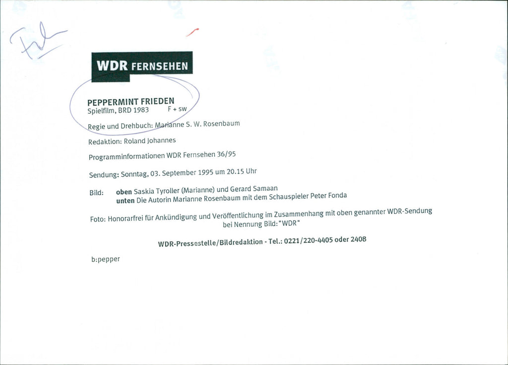 ENG: Peppermint-Frieden: Directed by Marianne Rosenbaum. With Gérard Samaan. DUTCH: Peppermint-Frieden: geregisseerd door Marianne Rosenbaum. Met Gerard Samaan. ENG: Peppermint-Frieden: Directed by Marianne Rosenbaum. With Gérard Samaan. DUTCH: Peppermint-Frieden: geregisseerd door Marianne Rosenbaum. Met Gerard Samaan.