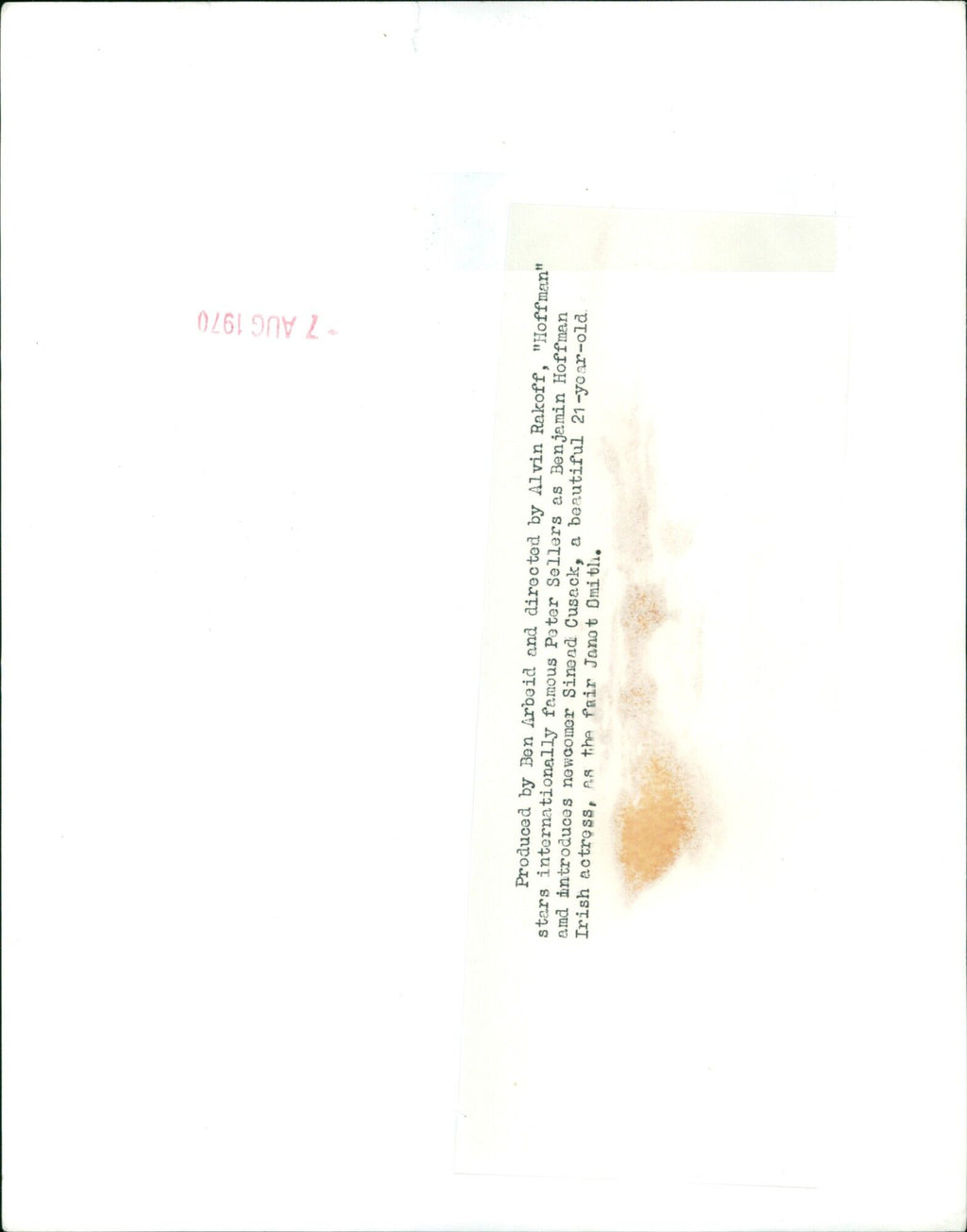 Peter Sellers and Sinead Cusack star in the film "Hoffman" directed by Alvin Rakoff. - Vintage Photograph