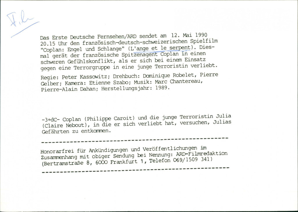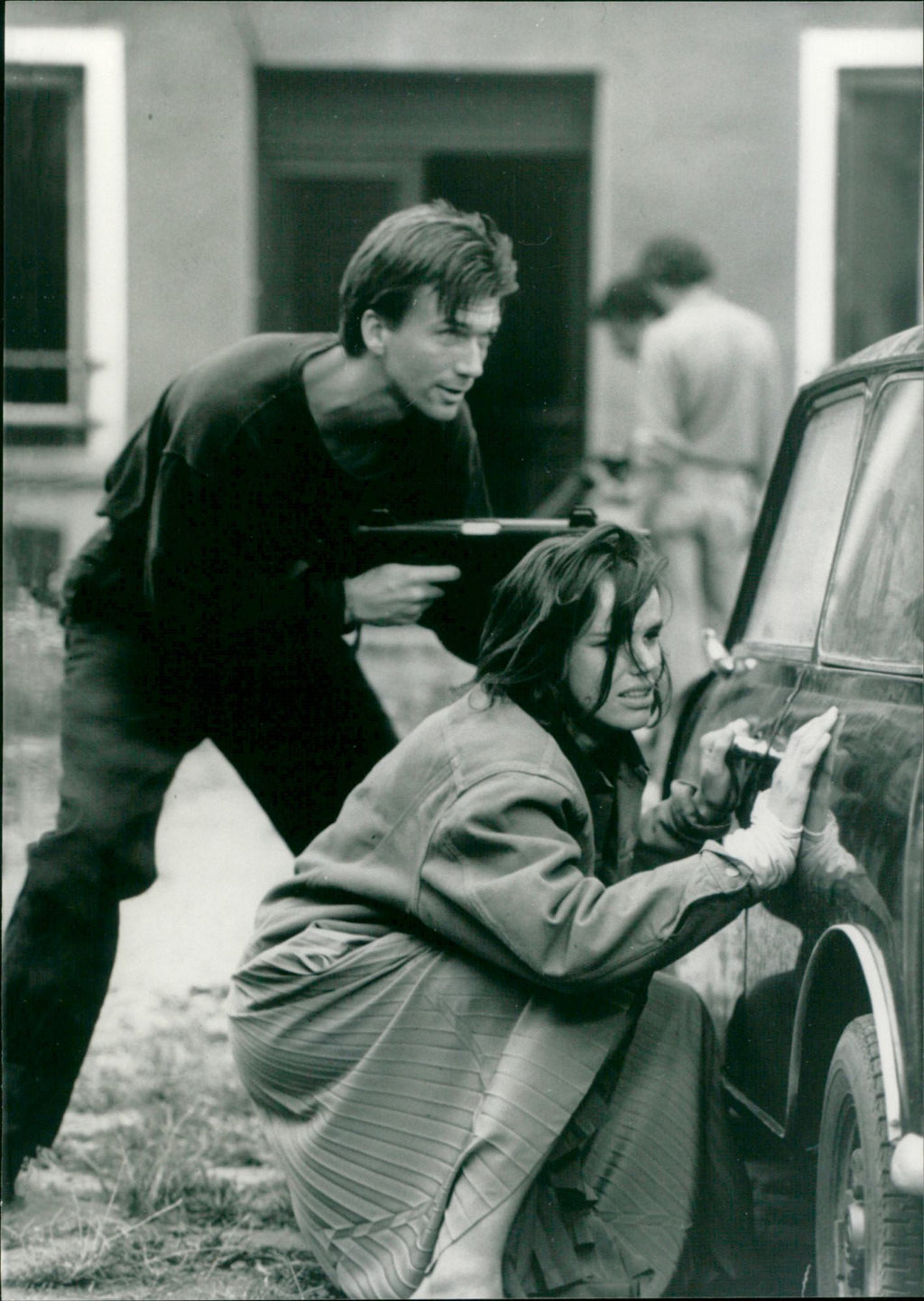 English: Philippe Cairot as Coplan and Claire Nebout as Julia in the movie "Coplan: l'ange et le serpent". Dutch: Philippe Cairot als Coplan en Claire Nebout als Julia in de film "Coplan: l'ange et le serpent". English: Philippe Cairot as Coplan and Claire Nebout as Julia in the movie "Coplan: l'ange et le serpent". Dutch: Philippe Cairot als Coplan en Claire Nebout als Julia in de film "Coplan: l'ange et le serpent".