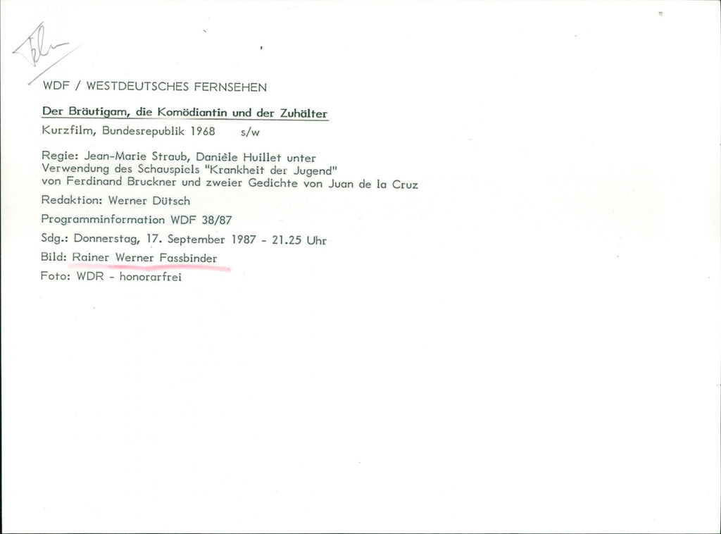 Rainer Werner Fassbinder - Der Bräutigam, die Komödiantin und der Zuhälter - Vintage Photograph