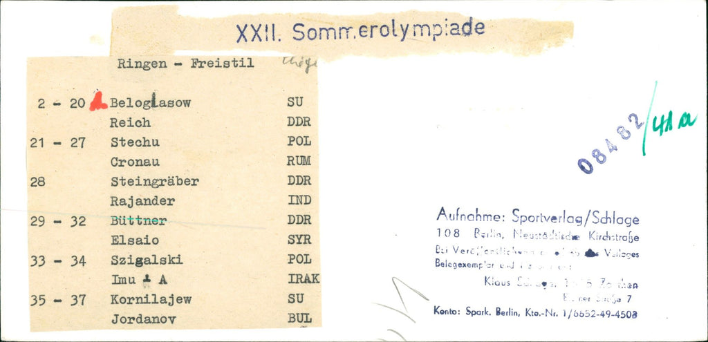 RINGEN SOMMEROLYMPIADE FREESTYLE DDR POL RUM IND SYR FILM - Vintage Photograph