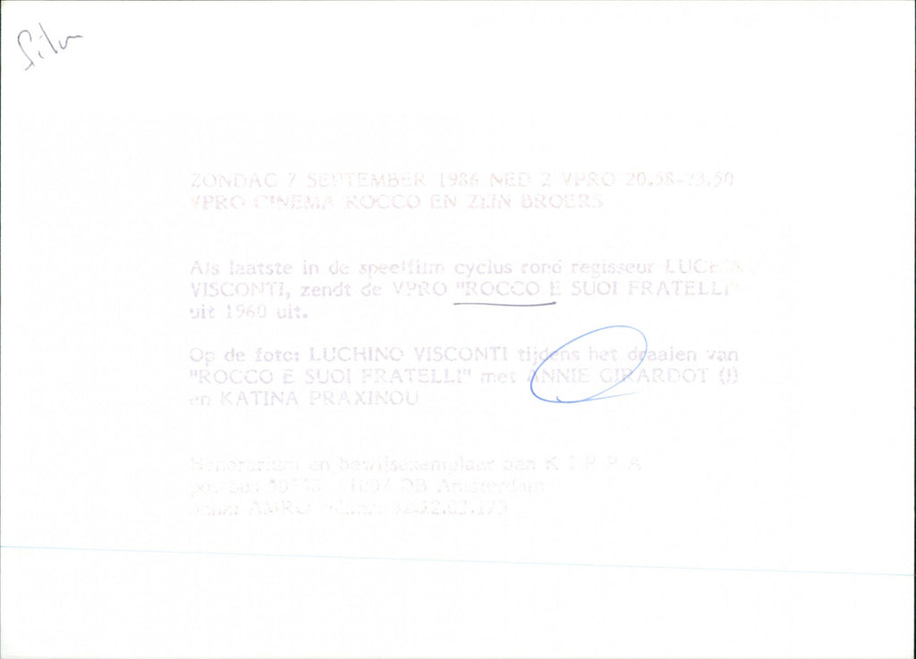 Eng: Luchino Visconti during the shooting of "Rocco e i suoi fratelli" with Annie Girardot (l) and Katina Paxinou. Dutch: Luchino Visconti tijdens het draaien van "Rocco e i suoi fratelli" met Annie Girardot (l) en Katina Paxinou. Eng: Luchino Visconti during the shooting of "Rocco e i suoi fratelli" with Annie Girardot (l) and Katina Paxinou. Dutch: Luchino Visconti tijdens het draaien van "Rocco e i suoi fratelli" met Annie Girardot (l) en Katina Paxinou.