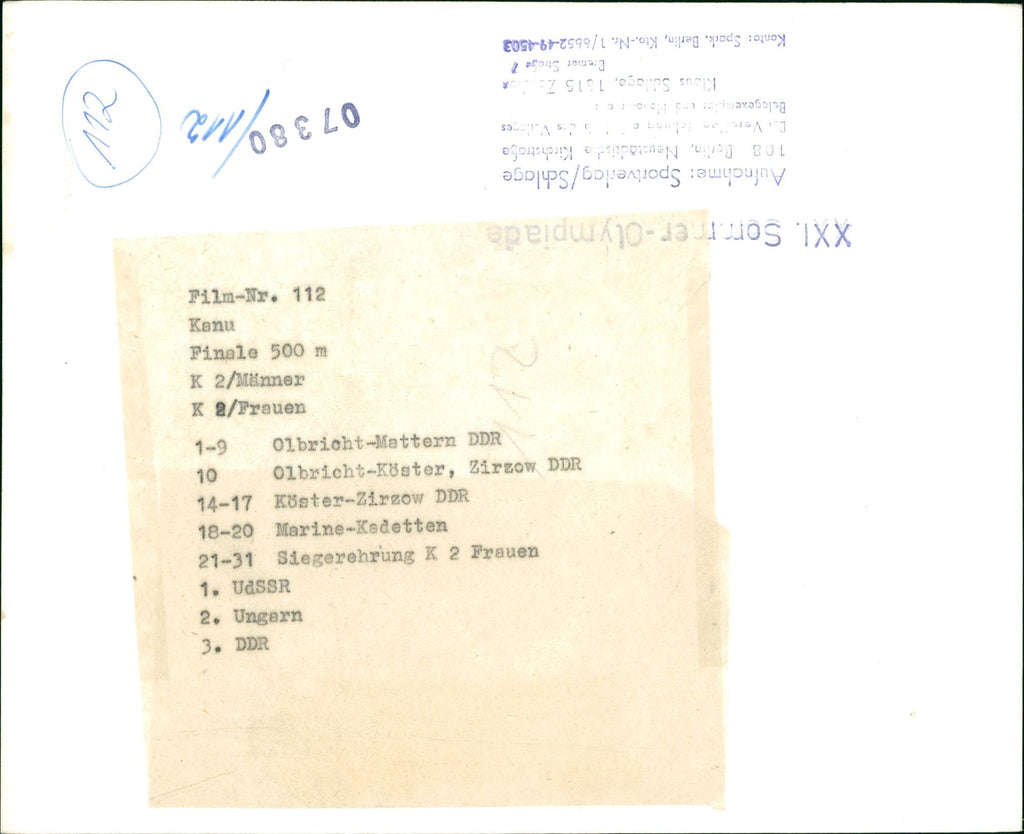 RUDERN OLYMPIADE FILM CANOE FINALE MANNER WOMEN OLBRICHT MATTER - Vintage Photograph