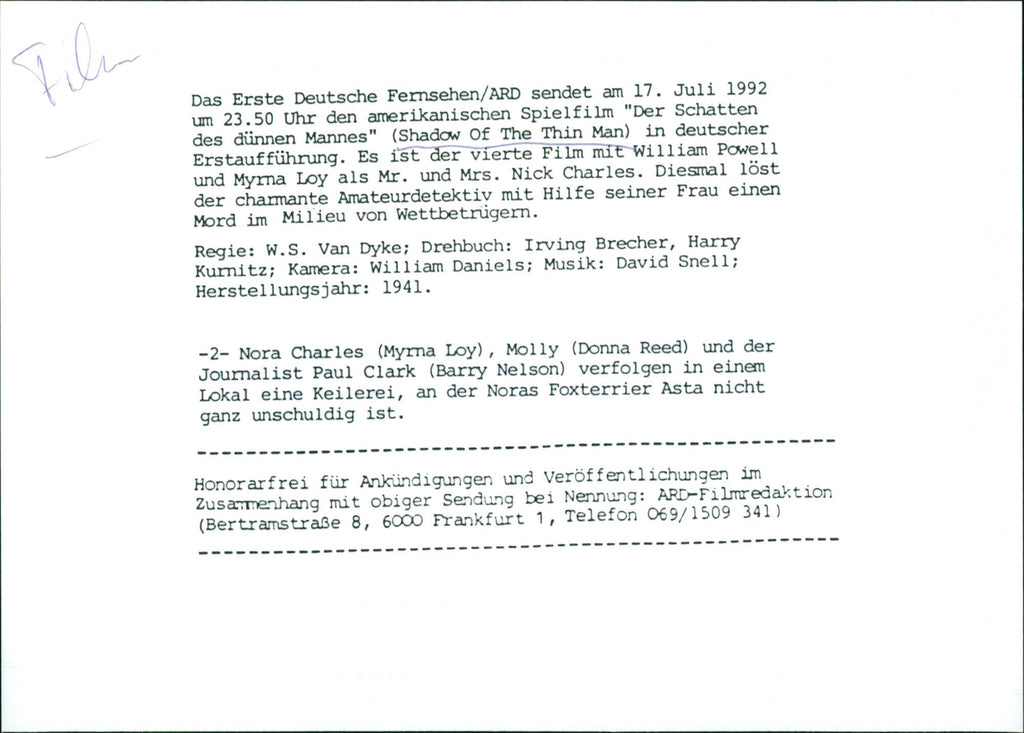 ENG: Shadow of the Thin Man: Directed by W.S. Van Dyke. With William Powell, Myrna Loy, Barry Nelson DUTCH: Shadow of the Thin Man: geregisseerd door W.S. Van Dyke. Met William Powell, Myrna Loy, Barry Nelson ENG: Shadow of the Thin Man: Directed by W.S. Van Dyke. With William Powell, Myrna Loy, Barry Nelson DUTCH: Shadow of the Thin Man: geregisseerd door W.S. Van Dyke. Met William Powell, Myrna Loy, Barry Nelson