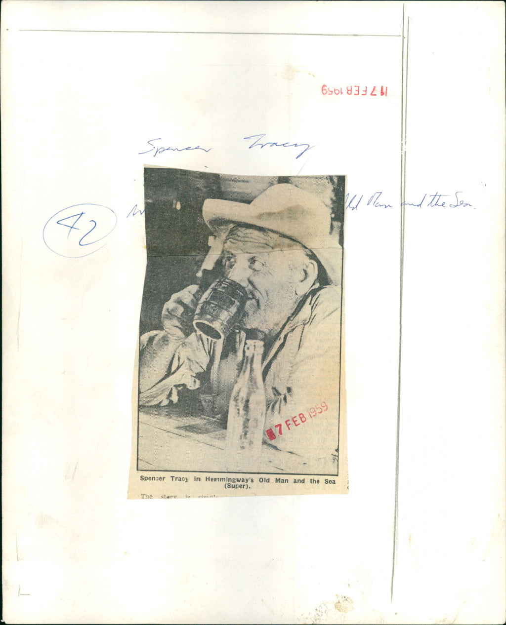 Spencer Tracy in Hemingway's Old Man and the Sea (Super). Spencer Tracy in Hemingway's Old Man and the Sea (Super).