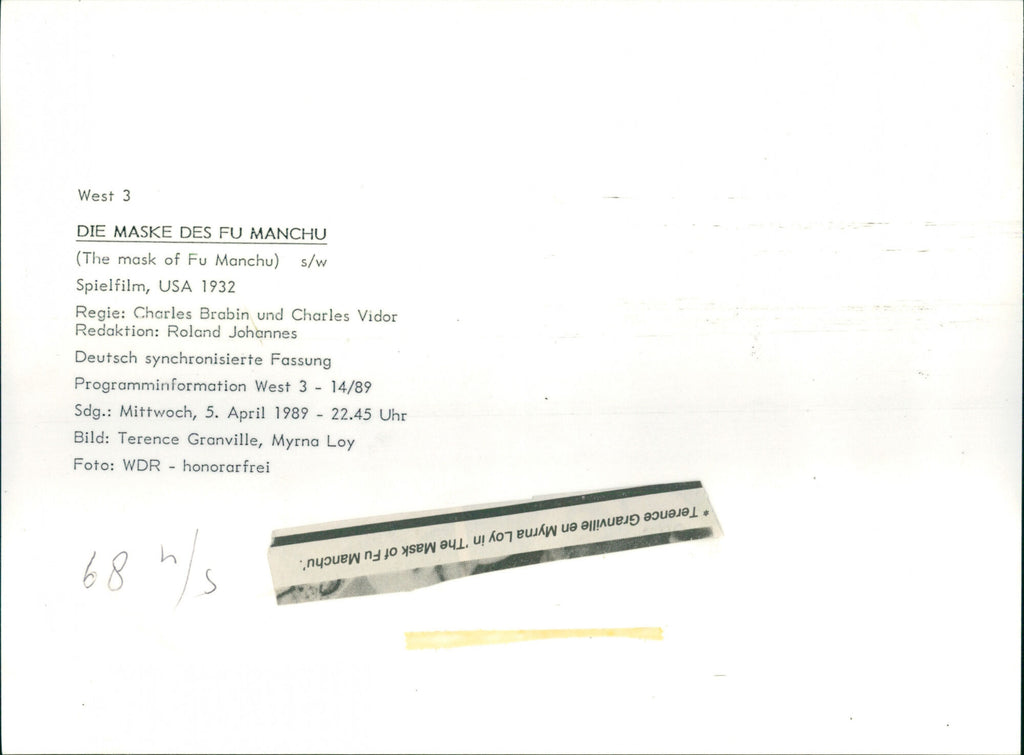 English: Terence Granville and Myrna Loy in the 1932 movie "The Mask of Fu Manchu". Dutch: Terence Granville en Myrna Loy in de film "The Mask of Fu Manchu" uit 1932. English: Terence Granville and Myrna Loy in the 1932 movie "The Mask of Fu Manchu". Dutch: Terence Granville en Myrna Loy in de film "The Mask of Fu Manchu" uit 1932.