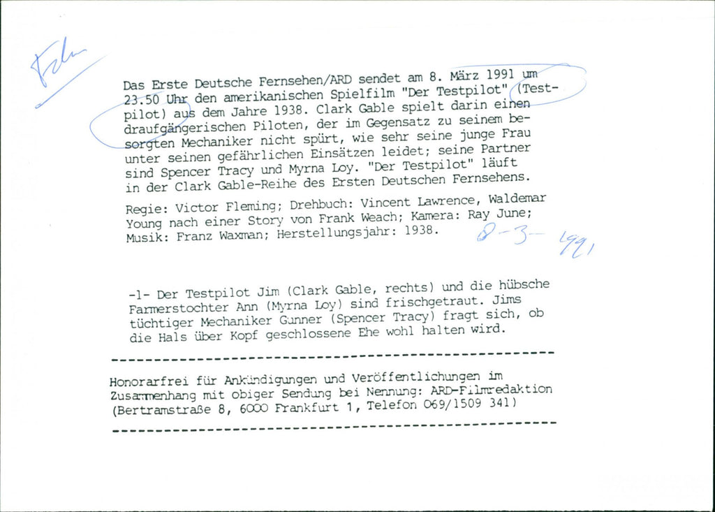 ENG: Test Pilot is a 1938 film directed by Victor Fleming, starring Clark Gable, Myrna Loy and Spencer Tracy DUTCH: Test Pilot is een film uit 1938 onder regie van Victor Fleming, met in de hoofdrollen Clark Gable, Myrna Loy en Spencer Tracy ENG: Test Pilot is a 1938 film directed by Victor Fleming, starring Clark Gable, Myrna Loy and Spencer Tracy DUTCH: Test Pilot is een film uit 1938 onder regie van Victor Fleming, met in de hoofdrollen Clark Gable, Myrna Loy en Spencer Tracy