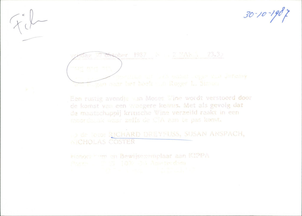 ENG: The Big Fix: Directed by Jeremy Kagan. With Richard Dreyfuss, Susan Anspach DUTCH: The Big Fix: geregisseerd door Jeremy Kagan. Met Richard Dreyfuss, Susan Anspach ENG: The Big Fix: Directed by Jeremy Kagan. With Richard Dreyfuss, Susan Anspach DUTCH: The Big Fix: geregisseerd door Jeremy Kagan. Met Richard Dreyfuss, Susan Anspach