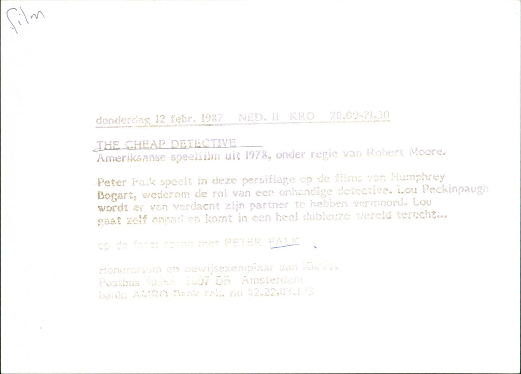 ENG: The Cheap Detective: Directed by Robert Moore. With Peter Falk, Ann-Margret, Eileen Brennan, Sid Caesar DUTCH: De goedkope detective: geregisseerd door Robert Moore. Met Peter Falk, Ann-Margret, Eileen Brennan, Sid Caesar ENG: The Cheap Detective: Directed by Robert Moore. With Peter Falk, Ann-Margret, Eileen Brennan, Sid Caesar DUTCH: De goedkope detective: geregisseerd door Robert Moore. Met Peter Falk, Ann-Margret, Eileen Brennan, Sid Caesar