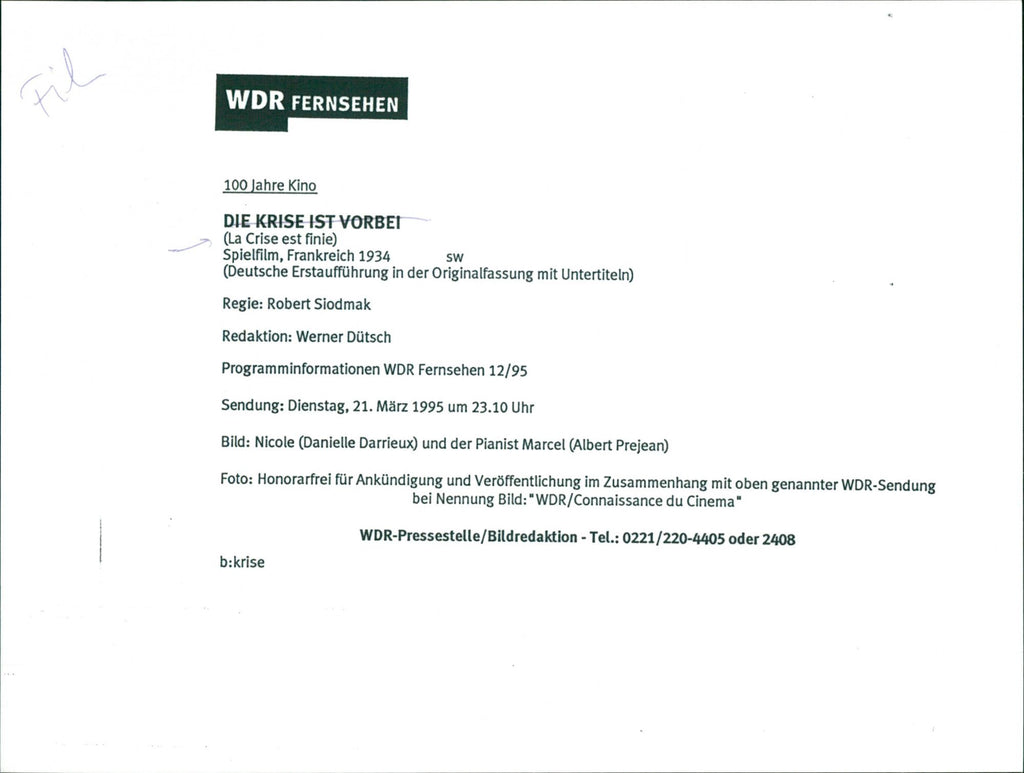 ENG: The Crisis is Over (French: La crise est finie) Albert Préjean, and Danielle Darrieux DUTCH: De crisis is voorbij (Frans: La crise est finie) Albert Préjean en Danielle Darrieux ENG: The Crisis is Over (French: La crise est finie) Albert Préjean, and Danielle Darrieux DUTCH: De crisis is voorbij (Frans: La crise est finie) Albert Préjean en Danielle Darrieux