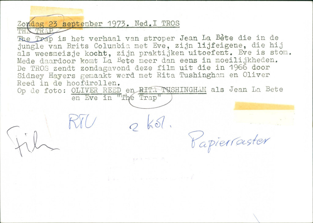 ENG: Oliver Reed and Rita Tushingham in the film called The Trap DUTCH: Oliver Reed en Rita Tushingham in de film genaamd The Trap ENG: Oliver Reed and Rita Tushingham in the film called The Trap DUTCH: Oliver Reed en Rita Tushingham in de film genaamd The Trap