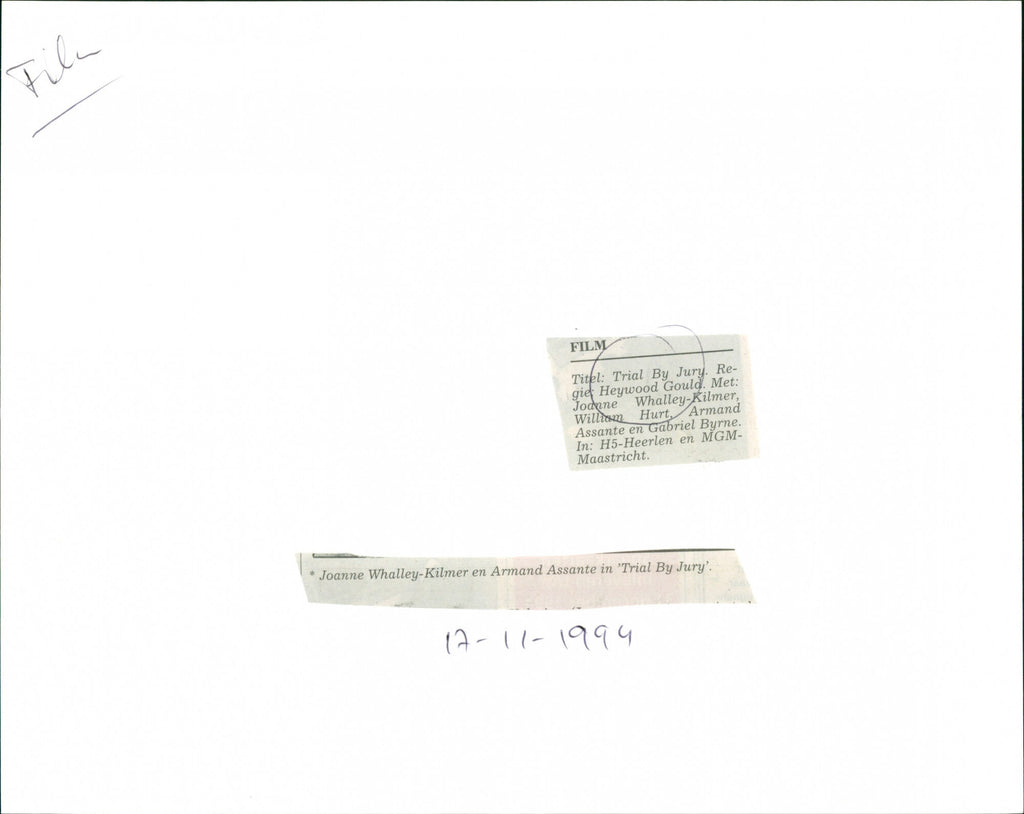 ENG: Trial by Jury is a 1994 American legal thriller directed by Heywood Gould and starring Joanne Whalley-Kilmer, Gabriel Byrne, Armand Assante and William Hurt DUTCH: Trial by Jury is een Amerikaanse juridische thriller uit 1994, geregisseerd door Heywood Gould en met in de hoofdrollen Joanne Whalley-Kilmer, Gabriel Byrne, Armand Assante en William Hurt. ENG: Trial by Jury is a 1994 American legal thriller directed by Heywood Gould and starring Joanne Whalley-Kilmer, Gabriel Byrne, Armand Assante and William Hurt DUTCH: Trial by Jury is een Amerikaanse juridische thriller uit 1994, geregisseerd door Heywood Gould en met in de hoofdrollen Joanne Whalley-Kilmer, Gabriel Byrne, Armand Assante en William Hurt.