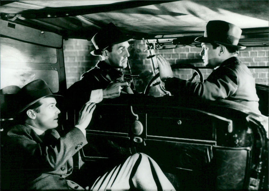English: A Scene from the 1941 movie "Unholy Partners", wherein gangster Jerry (Joseph Downing, center) is supposed to take 150,000 dollars from journalist Bruce Corey (Edward G. Robinson, right), who won the money in a gambling house. However, Corey and his young friend Tommy Jarvis (William T. Orr, left) put a spoke in Jerry's wheel. Dutch: Een scène uit de film "Unholy Partners" uit 1941, waarin gangster Jerry (Joseph Downing, midden) 150.000 dollar zou afpakken van journalist Bruce Corey (Edward G. Robinson, rechts), die het geld gewonnen heeft in een gokhuis. Corey en zijn jonge vriend Tommy Jarvis (William T. Orr, links) steken echter een spaak in Jerry's wiel. English: A Scene from the 1941 movie "Unholy Partners", wherein gangster Jerry (Joseph Downing, center) is supposed to take 150,000 dollars from journalist Bruce Corey (Edward G. Robinson, right), who won the money in a gambling house. However, Corey and his young friend Tommy Jarvis (William T. Orr, left) put a spoke in Jerry's wheel. Dutch: Een scène uit de film "Unholy Partners" uit 1941, waarin gangster Jerry (Joseph Downing, midden) 150.000 dollar zou afpakken van journalist Bruce Corey (Edward G. Robinson, rechts), die het geld gewonnen heeft in een gokhuis. Corey en zijn jonge vriend Tommy Jarvis (William T. Orr, links) steken echter een spaak in Jerry's wiel.