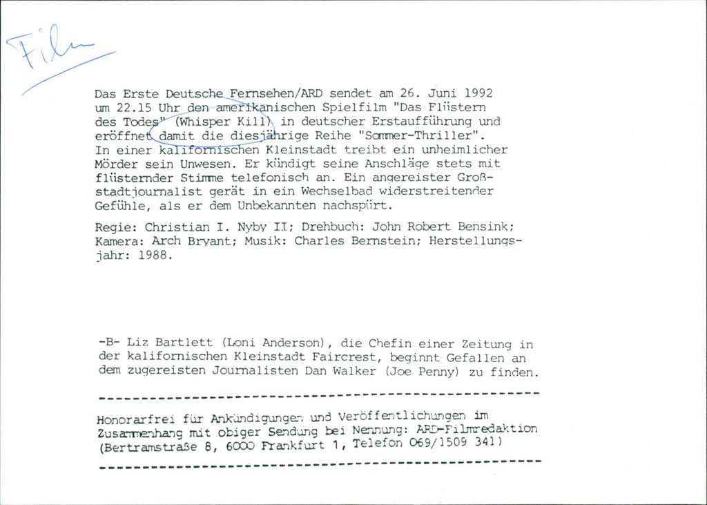 ENG: Whisper Kill: Directed by Christian I. Nyby II. With Loni Anderson, Joe Penny DUTCH: Whisper Kill: Geregisseerd door Christian I. Nyby II. Met Loni Anderson, Joe Penny ENG: Whisper Kill: Directed by Christian I. Nyby II. With Loni Anderson, Joe Penny DUTCH: Whisper Kill: Geregisseerd door Christian I. Nyby II. Met Loni Anderson, Joe Penny