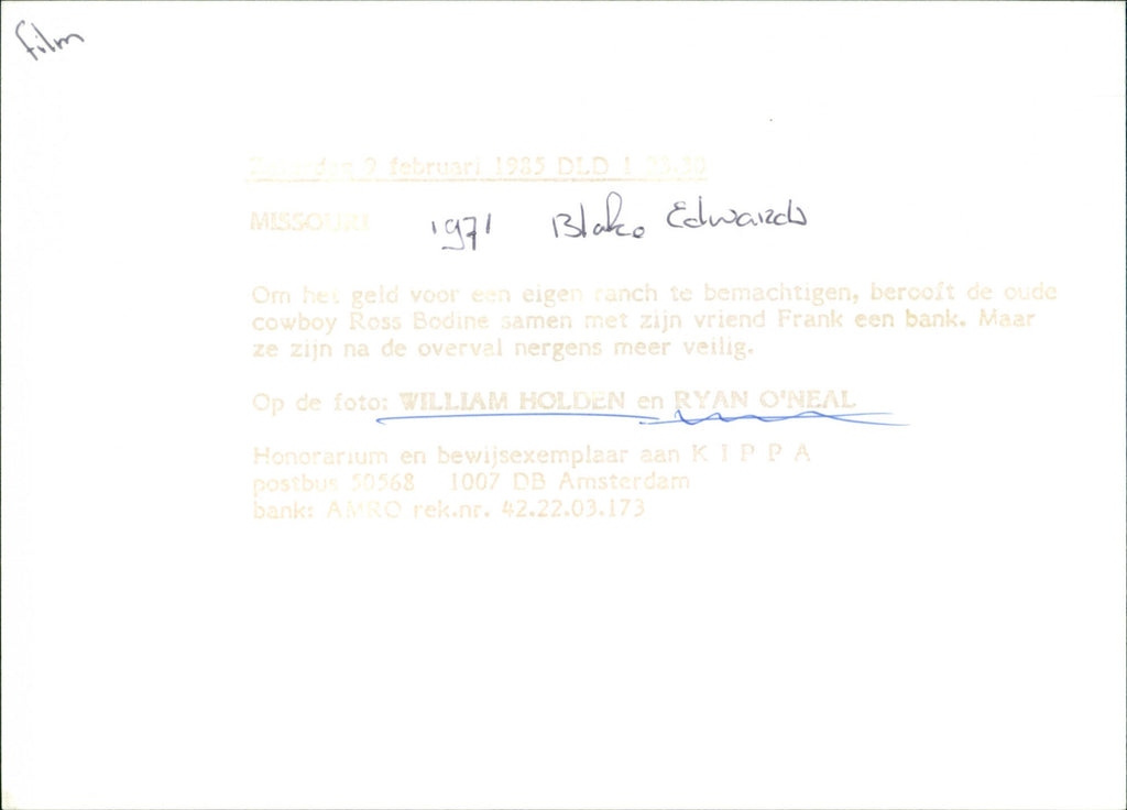 English: William Holden and Ryan O'Neal in the 1971 movie "Missouri" (Wild Rovers). Dutch: William Holden en Ryan O'Neal in de film "Missouri" (Wild Rovers) uit 1971. English: William Holden and Ryan O'Neal in the 1971 movie "Missouri" (Wild Rovers). Dutch: William Holden en Ryan O'Neal in de film "Missouri" (Wild Rovers) uit 1971.