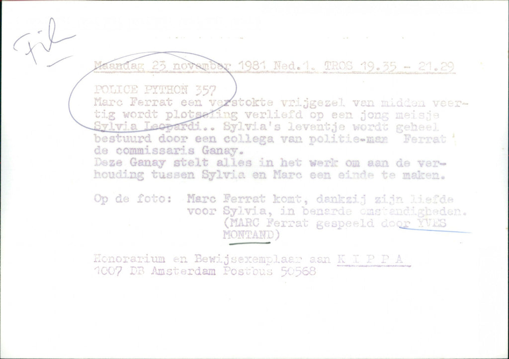 English: Yves Montand as Marc Ferrat in the movie "Police Python 357". Dutch: Yves Montand als Marc Ferrat in de film "Police Python 357". English: Yves Montand as Marc Ferrat in the movie "Police Python 357". Dutch: Yves Montand als Marc Ferrat in de film "Police Python 357".