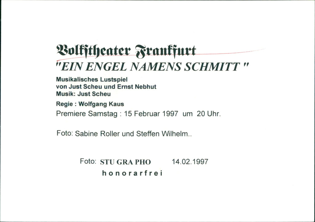 1997 PEOPLE VOLKTHEATER FRANKFURT AN ANGEL NAMED SCHMITT MUSICAL PLEAS PREMIERE - Vintage Photograph