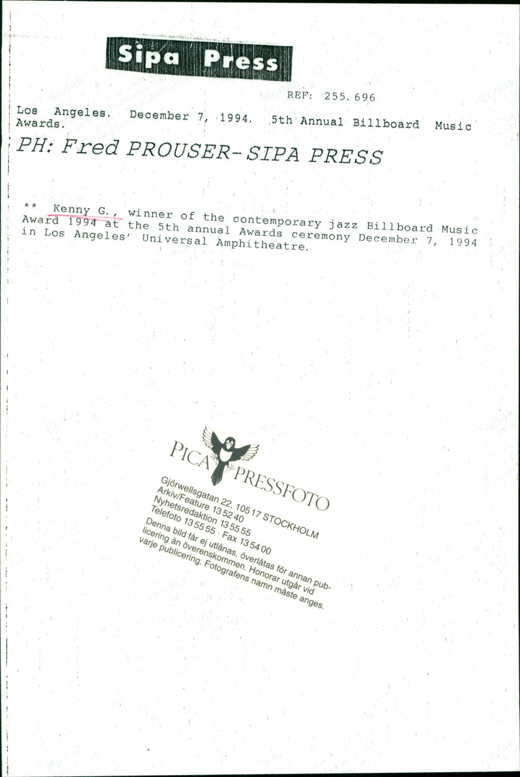 All the original vintage images are sold without watermarks. The prints are all over 30 years old and have been in the storage of the newspapers for decades. We sell them in the same conditions they were given to us by the archives.
