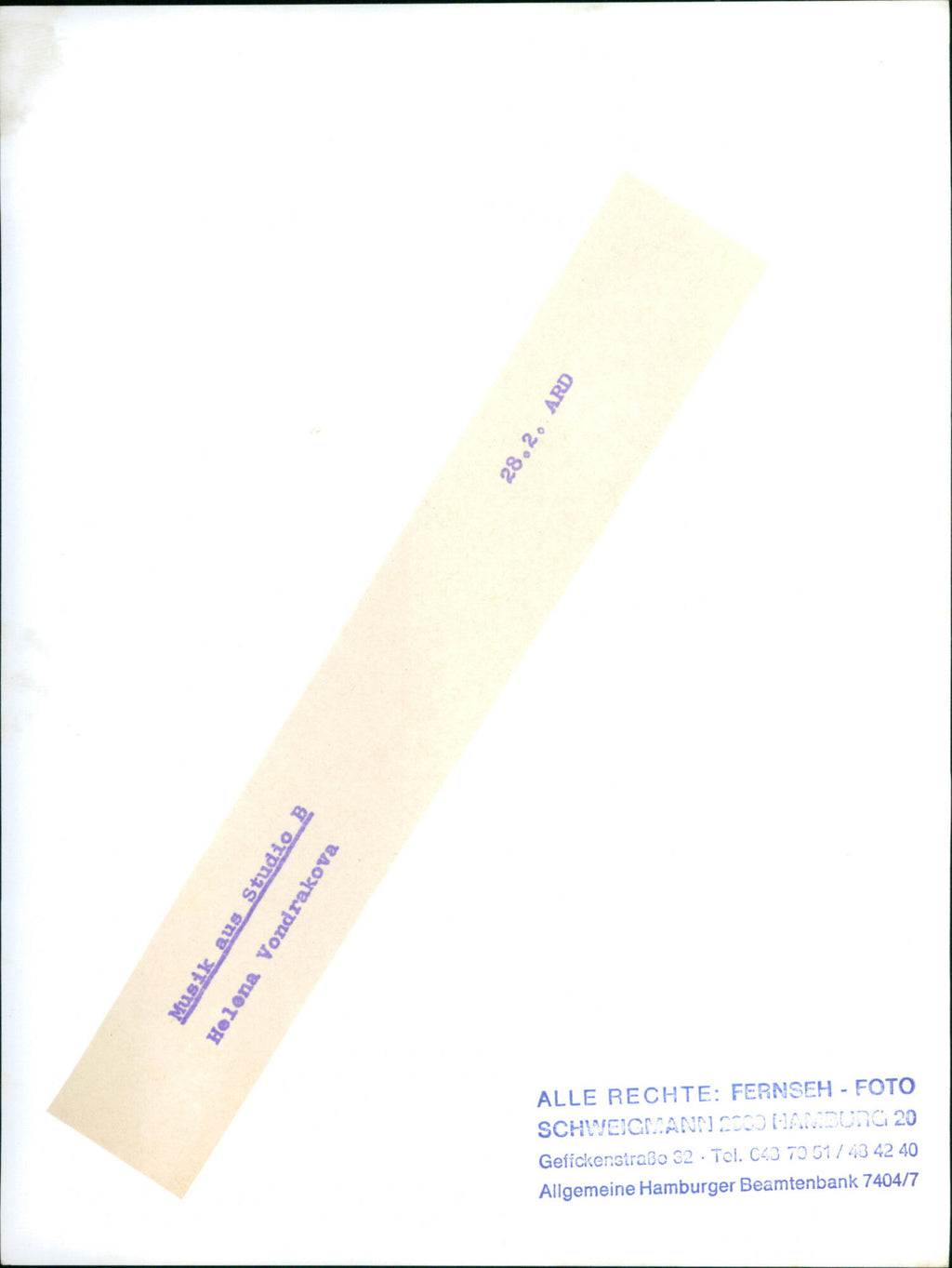 ARD MUSIC STUDIO HELENA VONDRAKOVA ALL RIGHTS FERNSEH FOTO SCHWCICMA - Vintage Photograph
