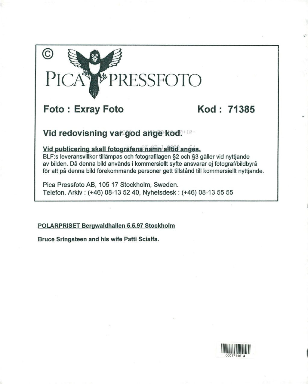 Bruce Springsteen and Patti Scialfa's wife arrive at the Polar Awards ceremony at the Bergwald Hall - Vintage Photograph