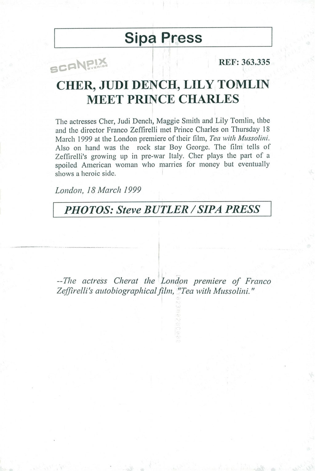 All our press photos are LIMITED ARCHIVE ORIGINALS - they are the actual prints that were used by the newspapers, they are not reprints or digital prints produced by us. All the prints are at least 30 years old and up to 100 years old.