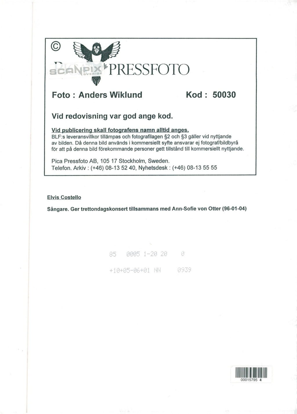 Elvis Costello gives a three-day concert together with Anne Sofie von Otter - Vintage Photograph