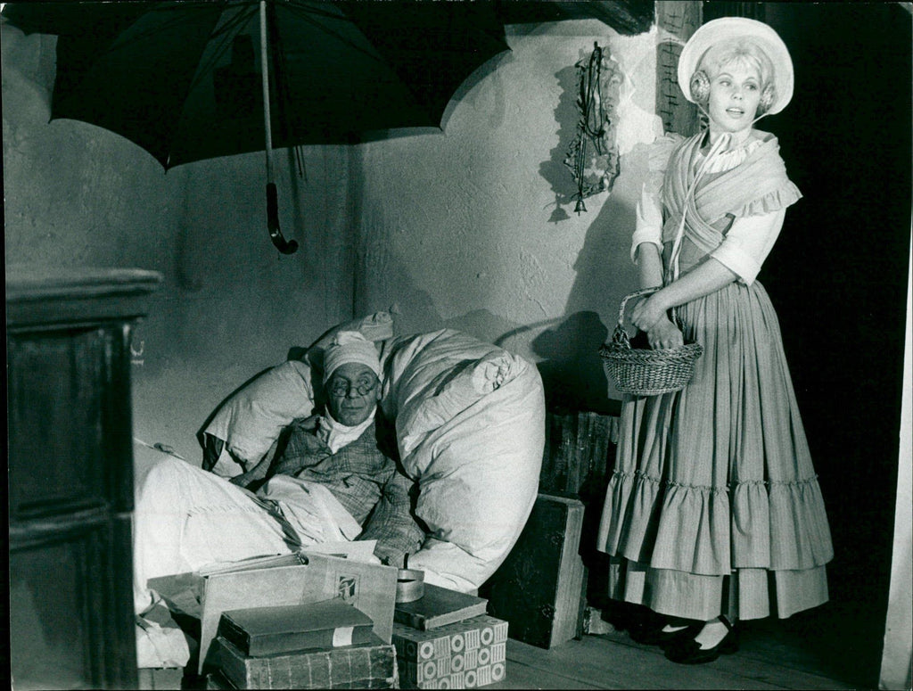 The pharmacist's daughter Hanne (Isy Orén) visits the poor poet Emil Knipp (Peter Lühr) in his poor dwelling. Das Apothekers Töchterlein Hanne (Isy Orén) besucht den armen Poeten Emil Knipp (Peter Lühr) in seiner ärmlichen Behausung.