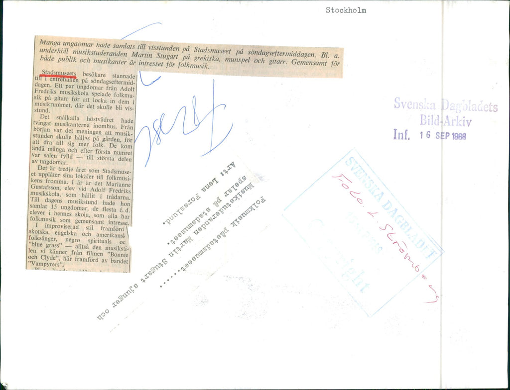 Folk music at the City Museum. Music student Martin STugart sings and plays - Vintage Photograph
